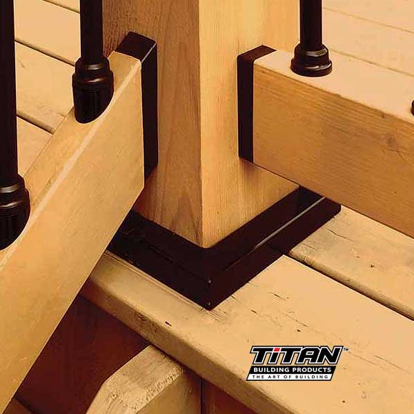 Titan 2pc Snap Fit Post Skirts are 2pc metal post skirts made for 4" or 6" nominal wood posts. 1" height works perfectly with Titan Post Anchors. Use with any post sleeve by sitting the sleeve on top of the skirt.